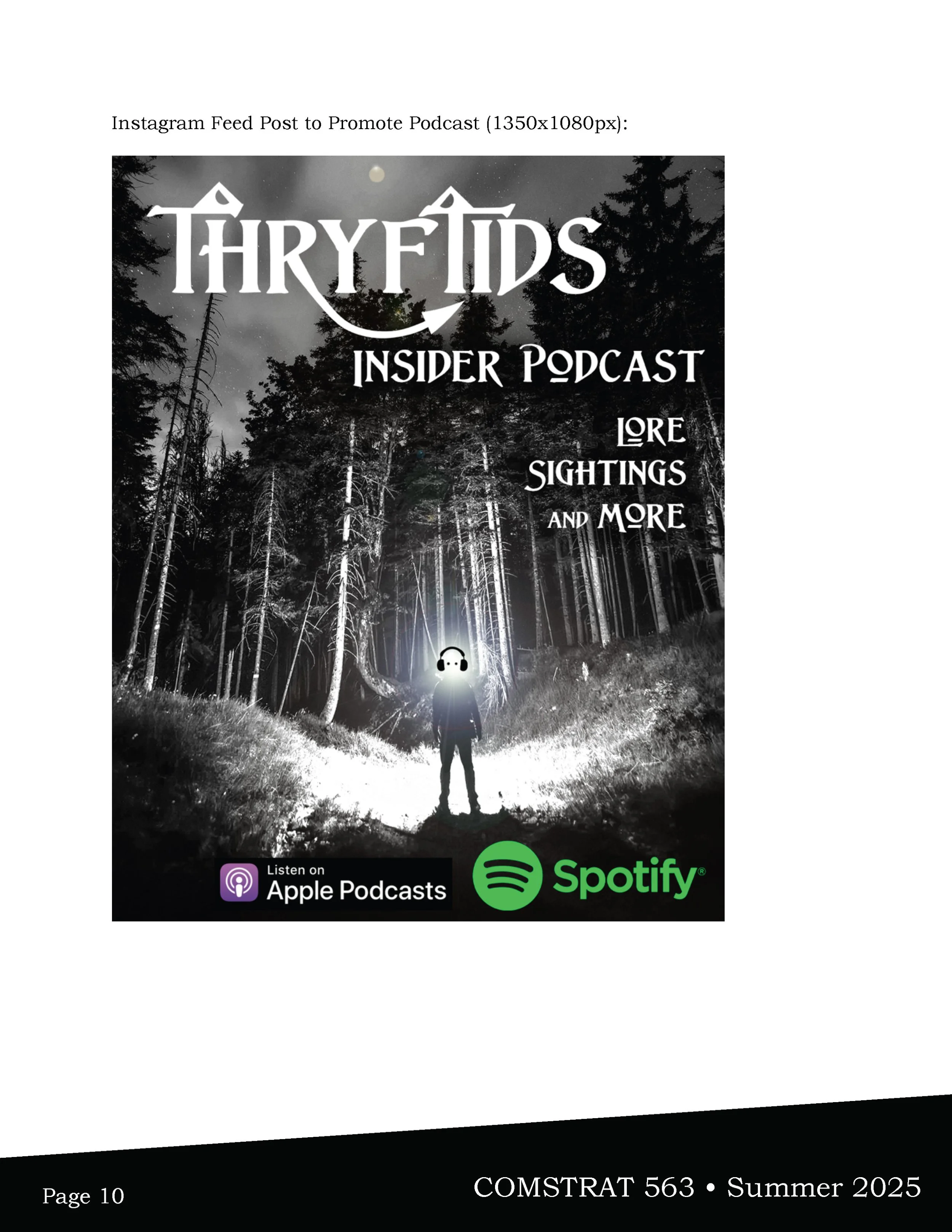 The campaign began with a concept—Thryftids—that I have had kicking around my brain for a while. It’s ultra specific in subject matter and, most pertinently for this project, would constitute an ongoing multi-platform presence using social media video, podcast, and even beyond digital platform with a print companion. The campaign plan calls for slogans, messaging, goals, as well as demo graphics that would seek to build followership across platforms, seeking to cultivate depth of engagement as opposed to breadth. All assets were created by me using Adobe tools, in some cases incorporating elements of royalty-free assets from Pexels.